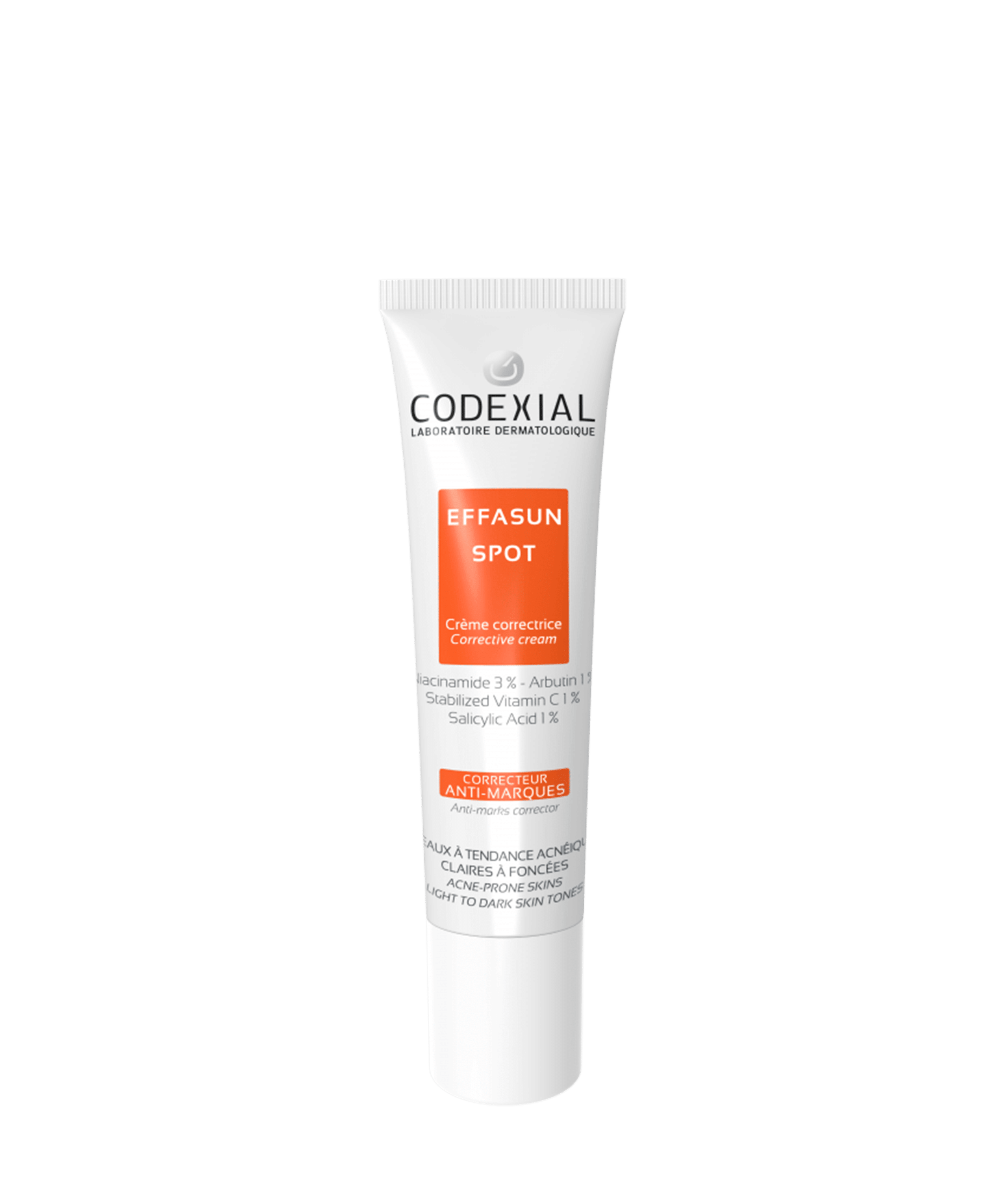 Chez Codexial, nous préférons utiliser l’acide glycolique seul ou associé à l’acide lactique afin de bien maîtriser tous les paramètres des produits et, surtout, celui de leur tolérance. Nous préférons concevoir des produits spécifiques dès qu’il s’agit d’utiliser l’acide salicylique, comme c’est le cas par exemple avec Enobright Spot, dédié à la correction des marques cicatricielles chez les peaux à tendance acnéique.