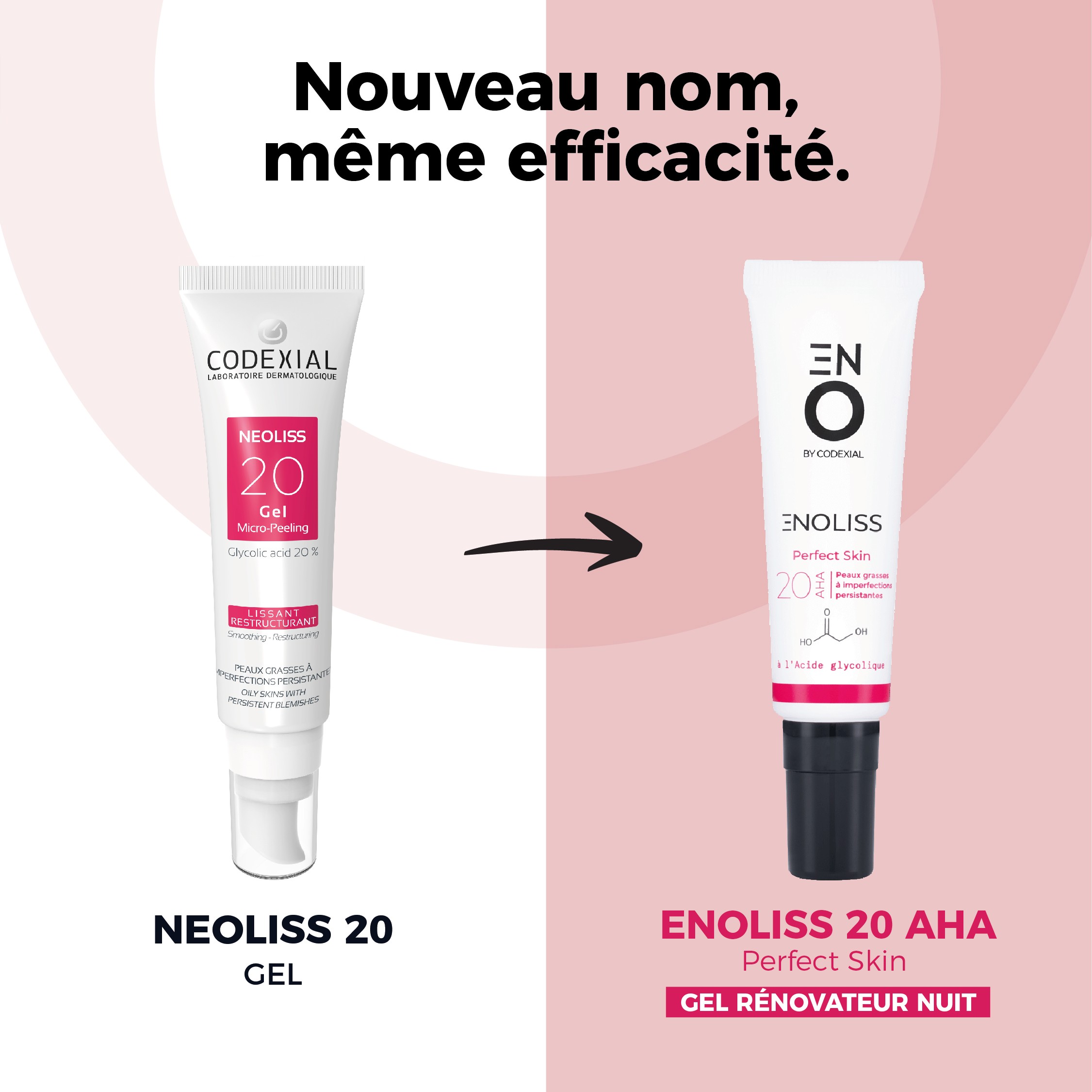 La gamme Enoliss (anciennement Neoliss) est le fruit de l’expertise dermatologique du Laboratoire Codexial dans les soins pour la beauté de la peau. Hautement concentrée en acide glycolique, actif incontournable pour stimuler le renouvellement de l’épiderme, la gamme ENOLISS vous permet de gommer les imperfections d’origine acnéique et points noirs, de resserrer les pores dilatés, de matifier la peau, d’estomper les marques d’origine acnéique, de retrouver un teint éclatant et plus uniforme. Quelle que soit votre préoccupation, il existe une formule ENOLISS adaptée à chaque situation pour retrouver une peau nette.