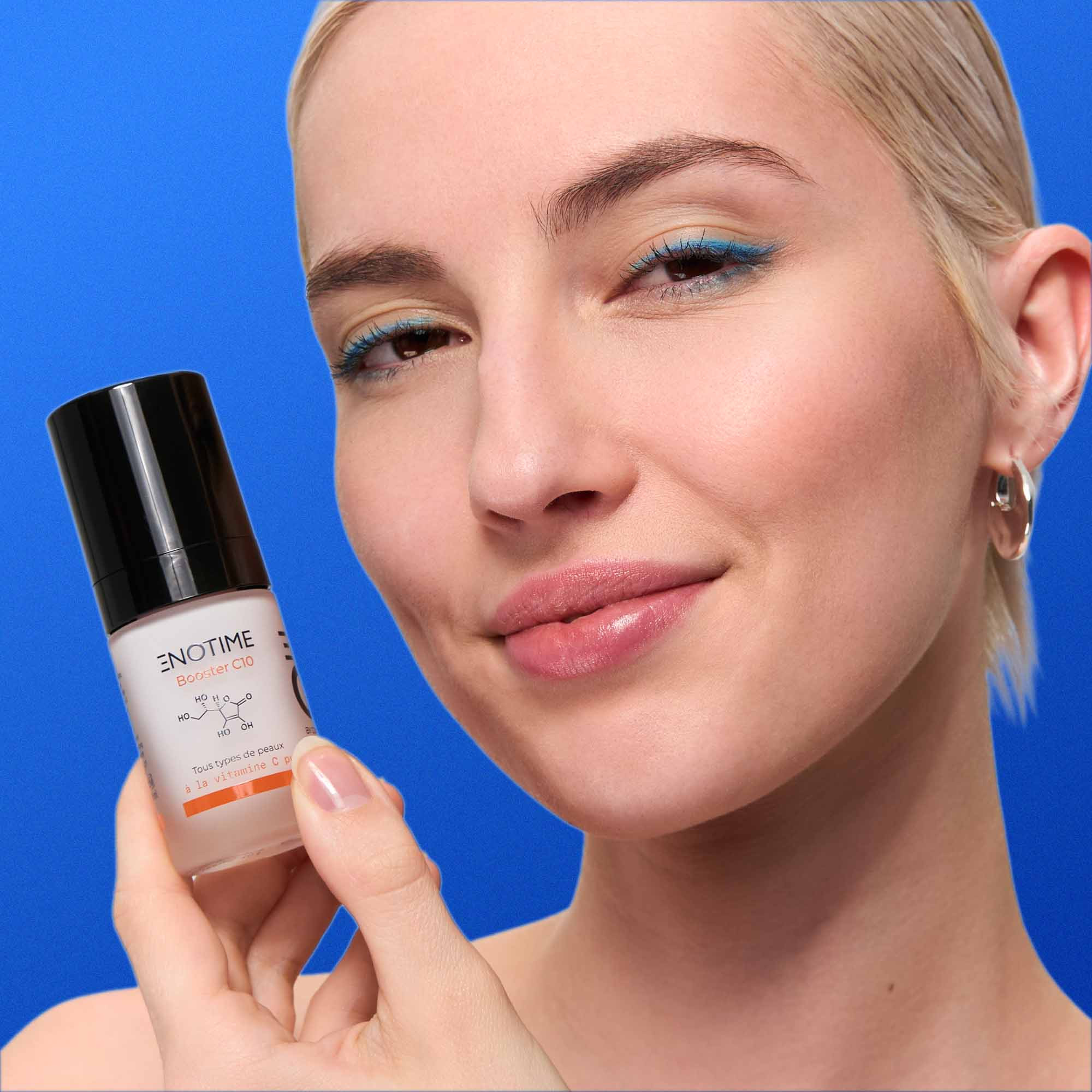ENOTIME Booster C10 est un sérum visage à la vitamine C formulé à 10 % de Vitamine C pure et stabilisée, associé à des acides hyaluroniques pour lisser, hydrater et illuminer visiblement la peau. Utilisé chaque jour, ce sérum protège la peau, lisse les ridules, ravive l’éclat du teint et améliore la qualité globale de la peau.