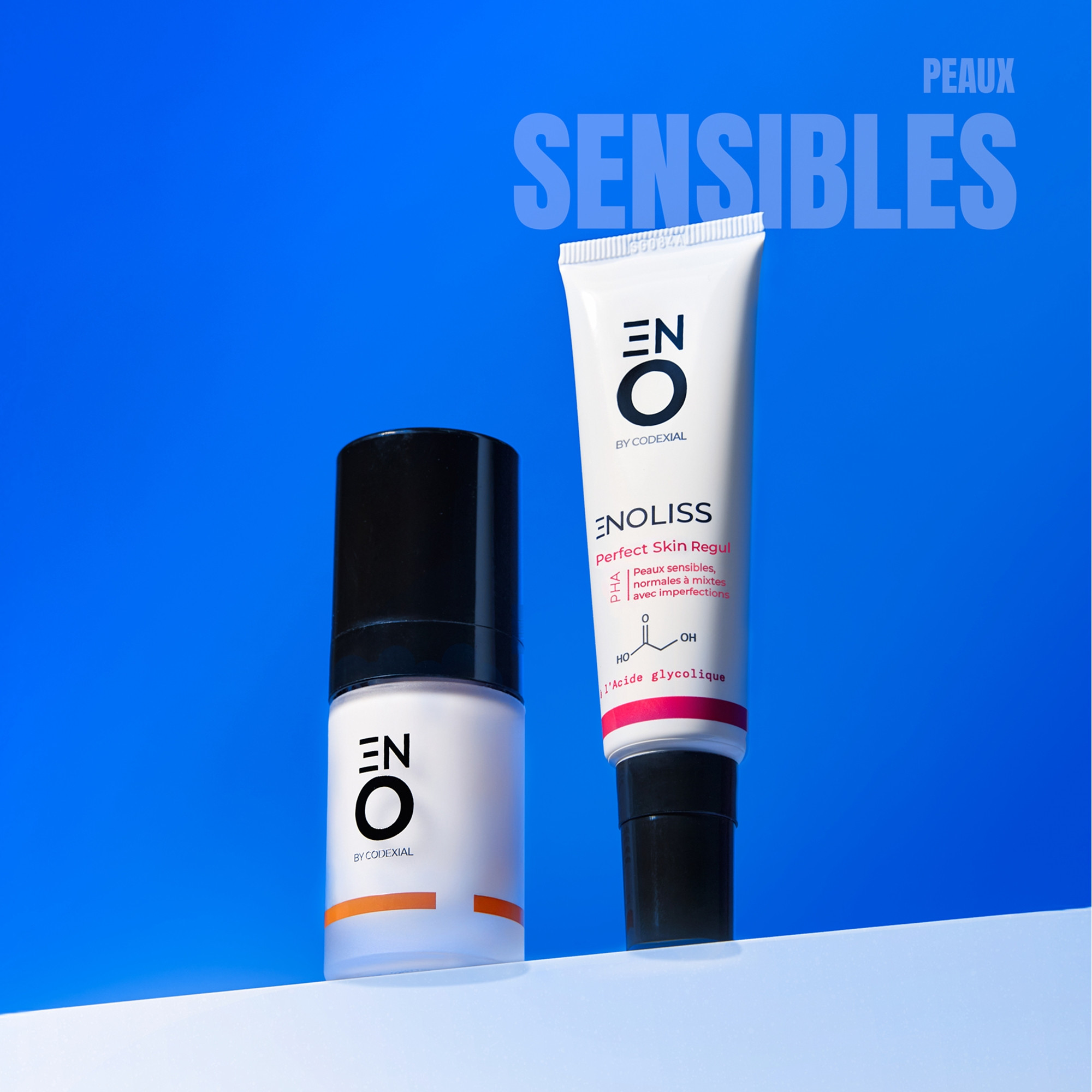Dès 25 ans, le stress oxydatif et le ralentissement du renouvellement cellulaire fragilisent la peau. Le teint devient irrégulier, les pores se dilatent, les ridules apparaissent. Pour préserver l’éclat et la qualité de la peau, il est essentiel d’agir à la fois en surface et en profondeur : exfolier pour lisser, protéger pour prévenir. C’est l’objectif du Protocole Éclat peaux sensibles ENOLISS Regul + ENOTIME Booster C10, une alliance recommandée par les dermatologues pour sa capacité à diminuer l'impact du temps sur la peau.